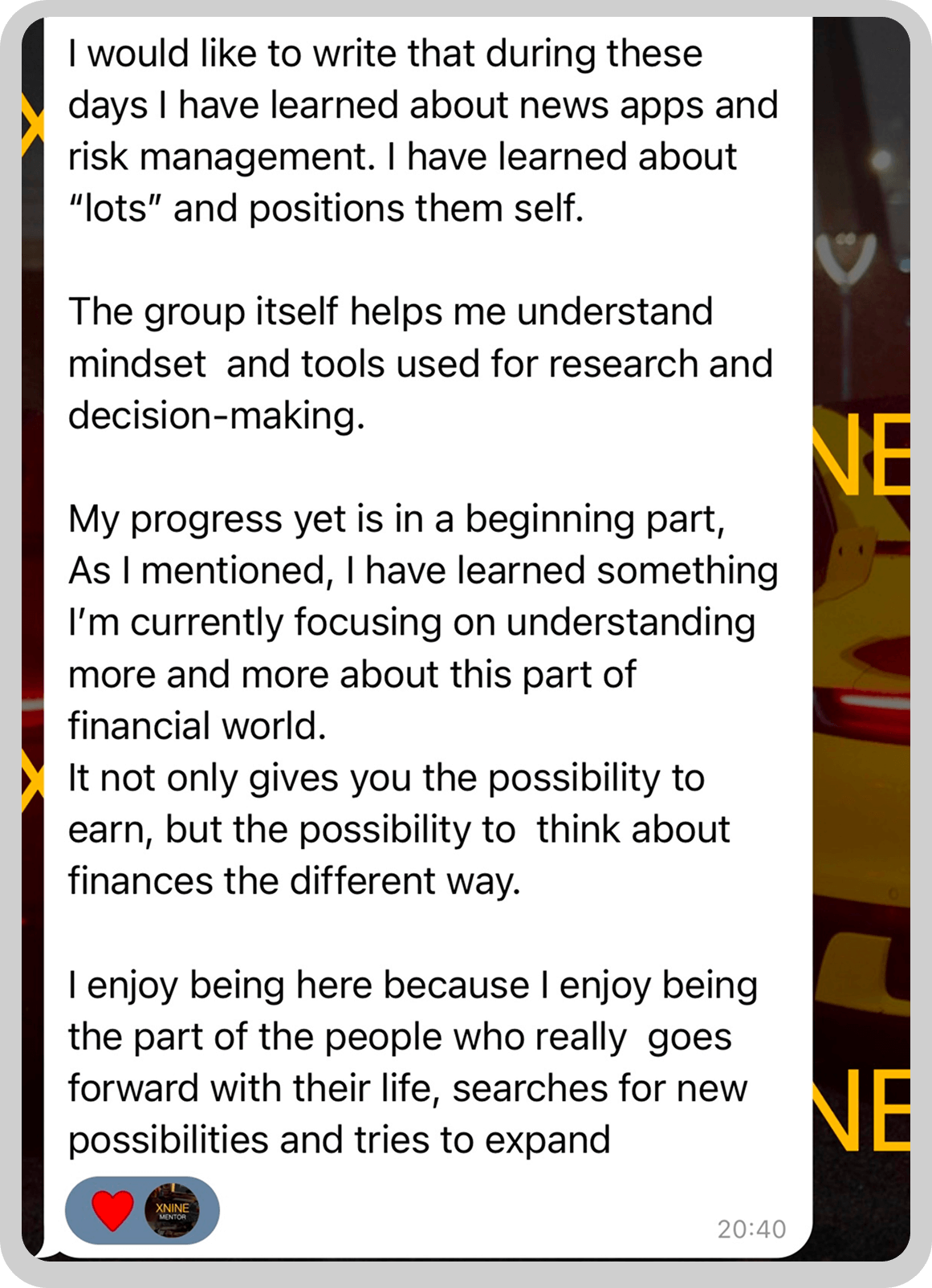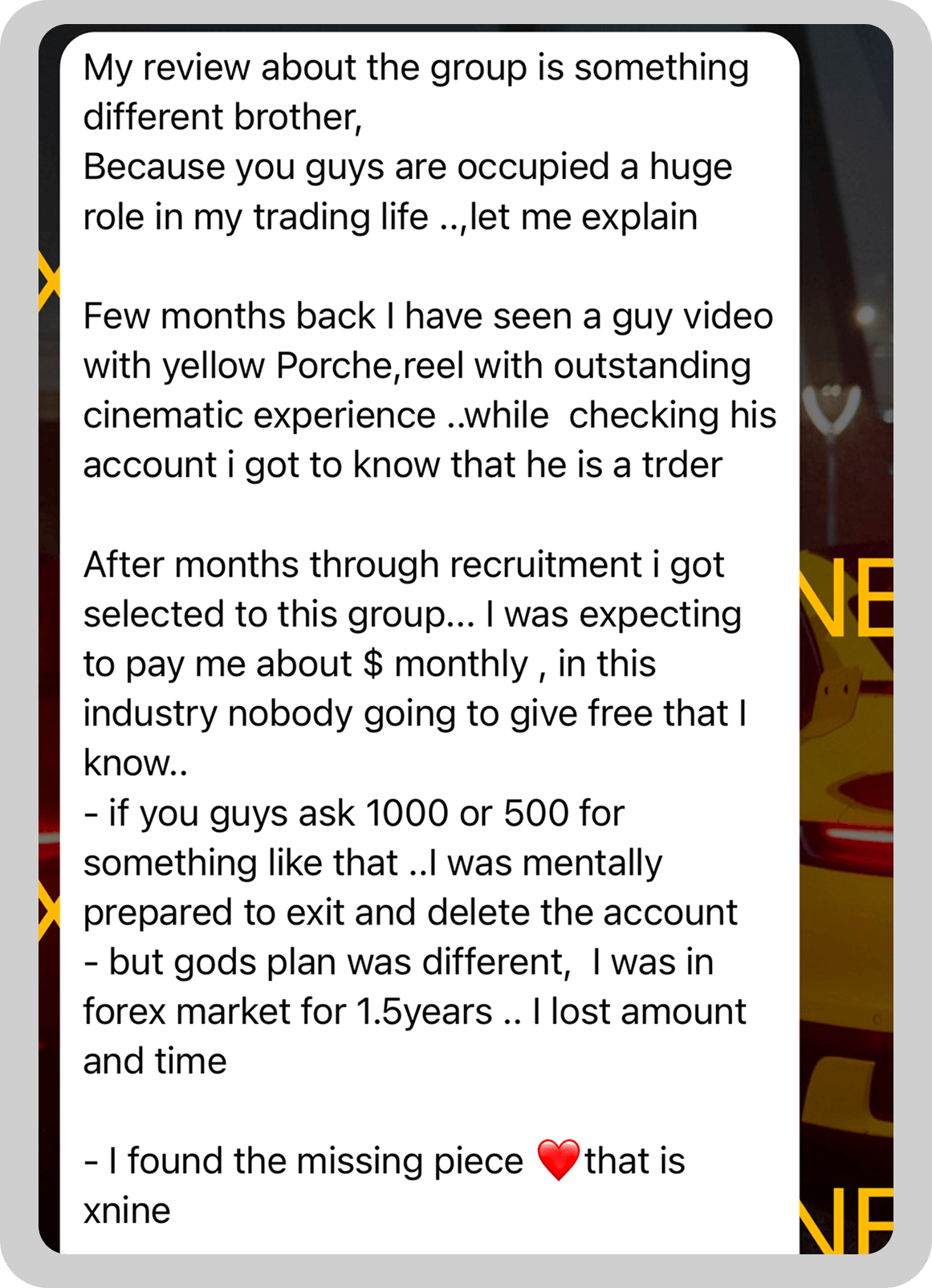 THESE ARE SOME OF THE REVIEWS FROM XNINE PARTICIPANTS
